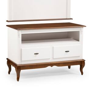 Rack com Painel para Sala 120cm Pés Luis XV 2 Gavetas e Nicho Linz Móveis - Branco/Imbuia Glazer