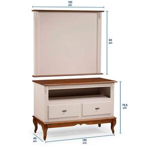 Rack com Painel para Sala 120cm Pés Luis XV 2 Gavetas e Nicho Linz Móveis - Off White/Imbuia Glazer