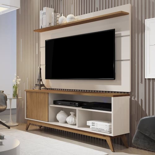 Com espaço para TVs de até 60 Polegadas o Rack Retrô Malbec. Móvel compacto e elegante, com 3 espaços para organizar seus equipamentos eletrônicos e uma porta para armazenar seus objetos pessoais o Rack Retrô Malbec é uma ótima opção para seu ambiente. Produto Montado: Sim Acabamento: Impressão Acabamento da Porta: Impressão Acabamento da Prateleira: Impressão Altura do Painel: 133 cm Altura do Rack: 63 cm Altura dos Pés: 12 cm Altura Máxima dos Pés: 12.0000 Ambiente Principal: Sala de Estar codigo_ean: 7900288276742 Complexidade da Montagem: Baixa: pode ser montado por uma pessoa sozinha Cor: Off White /Freijó Cor do Produto: Off White /Freijó Escala de Brilho: Semi-Brilho Escala de Brilho da Porta: Semi-Brilho Escala de Brilho da Prateleira: Semi-Brilho Espessura do Painel: 21 cm Espessura do Tampo: 15 mm Fixação na Parede: Sim Ideal para TVs até (Polegadas): 60 Itens Inclusos: 1 Rack, 1 Painel e Kit Ferragens Largura do Painel: 136 cm Largura do Rack: 136 cm Linha ou Coleção: Malbec Wood Manual de Montagem e Instalação: https://product-hub-prd.madeiramadeira.com.br/243490990/documents/dd9a6e39-2a8c-4ee3-9cfc-102e18535794329272339171761335732785.pdf Marca: Giga Móveis Material da Porta: MDF/MDP Material da Prateleira: MDP Material dos Pés: Madeira Maciça Material Principal: MDF/MDP Necessita Montagem: Sim Peso do Painel: 25,3 kg Peso do Rack: 24,323 kg Peso Máximo por Prateleira: 4 kg Possui Espelho: Não Possui iluminação: Não Possui Passa Cabos: Sim Possui Pés: 04 Possui Tomada: Não Possui Vidro: Não Profundidade do Conjunto: 36 cm Profundidade do Rack: 36 cm Recomendações de Uso, Manutenção e Limpeza: Limpe Com Pano Levemente Umedecido Em Água. Nunca Utilize Produto Químico. Sapatas Niveladoras: Não Sistema de Montagem: parafusos, girofix e cavilhas Suporte de TV Universal Incluso: Não Tipo de Dobradiça/Corrediça da Porta: Metálica Tipo de Madeira Maciça dos Pés: Eucalipto Tipo de Puxador da Porta: Embutido Marca: Não Informado
