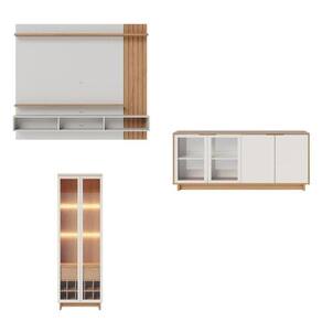 Kit 3 Peças 1 Rack Com Painel Para Tv 70 Polegadas, 1 Cristaleira 2 Portas e 1 Buffet 4 Portas