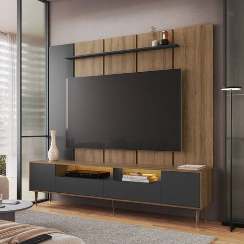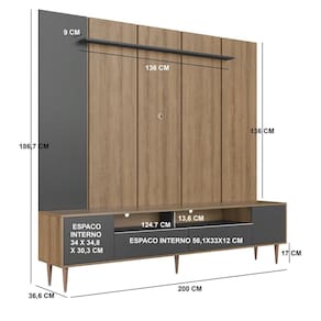 Otimizar espaços é uma das metas da Art In Móveis, por isso criamos o Home para TV com iluminação led Rotterdam. Este produto foi produzido em excelente material MDP com acabamento Finish Foil, que garante maior resistência e qualidade em seu móvel, suportando Tv até 75 polegadas e o charme dos negativos refinam o visual do painel. A essência de criar soluções que trazem mais conforto sua vida é o grande diferencial dos produtos Art In Móveis. Cada nova ideia é uma mistura de criatividade, funcionalidade e muita dedicação. Acabamento: Finish Foil Acabamento da Gaveta: Finish Foil Acabamento da Porta: Finish Foil Acabamento da Prateleira: Finish Foil Acabamento dos Pés: Impressão Acompanha Lâmpada: 01 Altura do Conjunto: 186,7 cm Altura do Painel: 136 cm Altura do Rack: 50,7 cm Altura dos Pés: 17 cm Ambiente Principal: Sala de Estar codigo_ean: 7900288247339 Complexidade da Montagem: Média: pode ser montado por mais de uma pessoa e/ou necessite de maior conhecimento para montagem Cor: Grafite/Mel Cor do Produto: Grafite/Mel Cor Flex: Não Cor Interna: Mel Escala de Brilho: Fosco Escala de Brilho da Gaveta: Fosco Escala de Brilho da Porta: Fosco Escala de Brilho da Prateleira: Fosco Espessura do Painel: 12 cm Espessura do Tampo: 15 mm Fixação na Parede: Sim Gaveta com Chave: Não Ideal para TVs até (Polegadas): 75 Itens Inclusos: 1 Rack, 1 Painel, Kit Ferragens e Manual de Montagem Largura do Conjunto: 200 cm Largura do Painel: 200 cm Largura do Rack: 200 cm Linha ou Coleção: Rotterdam Manual de Montagem e Instalação: https://cdn2.madeiramadeira.com.br/atributo/art-in-moveis/3237000-5225-17588137957815.pdf Marca: Art in Móveis Material da Gaveta: MDP Material da Porta: MDP Material da Prateleira: MDP Material do Puxador da Porta: MDP Material dos Pés: PVC Material Principal: MDP Montagem Flex: Não Necessita Montagem: Sim Origem do Produto: Nacional Peso do Painel: 29,7 kg Peso do Rack: 34,3 kg Peso Máximo por Gaveta: 5 kg Peso Máximo por Prateleira: 5 kg Possui Adega: Não Possui Espelho: Não Possui iluminação: Sim Possui Passa Cabos: Sim Possui Pés: 05 Possui Portas: 02 Possui Prateleiras: 01 Possui Tomada: Não Possui Vidro: Não Profundidade do Conjunto: 36,6 cm Profundidade do Rack: 36,6 cm Quantidade de Gavetas: 02 Gavetas Quantidade de Nichos: 02 Recomendações de Uso, Manutenção e Limpeza: Para a limpeza do móvel utilizar pano levemente umedecido Sapatas Niveladoras: Não Sistema de Montagem: Parafusos, cavilhas e minifix Suporte de TV Universal Incluso: Não Tipo de Corrediça da Gaveta: Metálica Telescópica Tipo de Dobradiça/Corrediça da Porta: Metálica Tipo de Puxador da Gaveta: Embutido Tipo de Puxador da Porta: Embutido