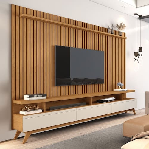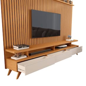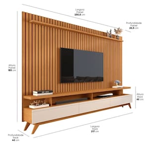 Um conjunto perfeito para sua casa. Com prateleira para sua decoração e nichos para seus equipamentos eletrônicos, vai trazer para a seu ambiente um toque de aconchego e elegância. O painel em 100% ripado real deixando-o sofisticado. O rack com três gavetas espaçosas de design moderno, com corrediça telescópica que dá leveza a abrir. Pés em madeira maciça dando mais segurança ao rack. Este conjunto foi pensado para você que gosta de beleza e sofisticação para seu lar. Produto Montado: Sim Acabamento: Impressão Acabamento da Gaveta: Impressão Acabamento da Prateleira: Impressão Altura do Painel: 183 cm Altura do Rack: 62 cm Altura dos Pés: 12 cm Ambiente Principal: Sala de Estar codigo_ean: 7900288156693 Complexidade da Montagem: Alta: deve ser montado por um montador especializado Cor: Marrom/Off White Cor do Produto: Marrom/Off White Escala de Brilho: Semi-Brilho Escala de Brilho da Prateleira: Semi-Brilho Espessura do Painel: 20,5 cm Espessura do Tampo: 4 mm Fixação na Parede: Sim Gaveta com Chave: Não Itens Inclusos: 1 Rack, 1 Painel e Ferragens Largura do Painel: 230,5 cm Largura do Rack: 217 cm Linha ou Coleção: Vivare Manual de Montagem e Instalação: https://product-hub-prd.madeiramadeira.com.br/572266607/documents/7813bf4c-f13f-40ae-bd30-582b73424c4e2922711391717470990134451.pdf Marca: Giga Móveis Material da Gaveta: MDF/MDP Material da Prateleira: MDF/MDP Material dos Pés: Madeira Maciça Material Principal: MDF/MDP Necessita Montagem: Sim Peso do Painel: 73,835 kg Peso do Rack: 56,098 kg Peso Máximo por Gaveta: 5 kg Peso Máximo por Prateleira: 5 kg Possui Espelho: Não Possui iluminação: Não Possui Passa Cabos: Sim Possui Pés: 05 Possui Portas: Não Possui Tomada: Não Possui Vidro: Não Profundidade do Painel: 20.5000 Profundidade do Rack: 40 cm Recomendações de Uso, Manutenção e Limpeza: Limpe Com Pano Levemente Umedecido Em Água. Nunca Utilize Produto Químico. Sapatas Niveladoras: Não Sistema de Montagem: parafusos, girofix e cavilhas Suporte de TV Universal Incluso: Não Tipo de Corrediça da Gaveta: Metálica Telescópica Tipo de Madeira Maciça dos Pés: Eucalipto Tipo de Puxador da Gaveta: Embutido Marca: Giga Móveis