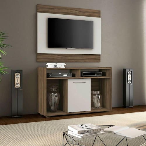 Rack Com Painel Para Tv Até 43 Polegadas Shows Nogal Trend/off White - Notavel - Marrom