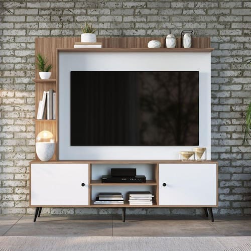 O Home Quiditá 2040, possui acabamento finish foil, produzido em material de excelente qualidade, seu acabamento é superior pois é produzido em painel 100% MDP o que lhe garante tal benefício que o torna muito mais sofisticado e com um requinte que sua sala merece. Falando em organização nele você conta com duas portas inferiores que são perfeitas para acomodar de tudo. O painel bem dimensionado acomodam televisores de até 50 Polegadas, garantindo o melhor do entretenimento para você e sua família. Além disso, em suas prateleias você pode acomodar seus aparelhos eletrônicos como home theater, DVD e receptador de antena. Pense em todos estes benefícios e veja se o Home Quiditá 2040 não é o produto ideal que você estava procurando! Produto Montado: Sim Acabamento da Porta: Finish Foil Acabamento da Prateleira: Finish Foil Ambiente Principal: Sala de Estar codigo_ean: 7908506223981 Complexidade da Montagem: Baixa: pode ser montado por uma pessoa sozinha Cor: Branco/Montana Cor do Produto: Branco/Montana Escala de Brilho: Semi-Brilho Escala de Brilho da Porta: Semi-Brilho Escala de Brilho da Prateleira: Semi-Brilho Ideal para TVs até (Polegadas): 50 Itens Inclusos: 1 Home, Kit Ferragens e Manual de Montagem Manual de Montagem e Instalação: https://product-hub-prd.madeiramadeira.com.br/684141/documents/dbc694c0-c6b9-482f-8d54-dae8812243a579976178997880753613.pdf Material da Porta: MDP Material da Prateleira: MDP Material dos Pés: Madeira Maciça Material Principal: MDP Necessita Montagem: Sim Origem do Produto: Nacional Peso: 64 kg Peso Máximo por Prateleira: 7 kg Possui Espelho: Não Possui iluminação: Não Possui Nichos: Não Possui Pés: 05 Possui Rodízio: Não Recomendações de Uso, Manutenção e Limpeza: Deve ser feita com pano macio e seco ou levemente umedecido com água e sabão neutro. Não devem ser utilizados abrasivos como palha de aço e objetos cortantes. Sapatas Niveladoras: Não Sistema de Montagem: Parafusos,cavilhas e minifix. Suporta Até (kg): 42 kg Tipo de Dobradiça/Corrediça da Porta: Metálica Tipo de Madeira Maciça dos Pés: Eucalipto Tipo de Puxador da Porta: Externo