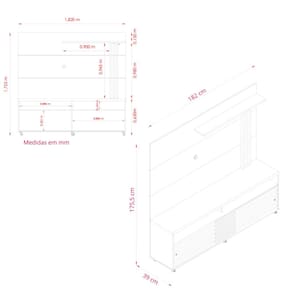 Dimensões: Altura: 175,5 cm Largura: 182 cm Profundidade: 39 cm Peso: 67,4 kg