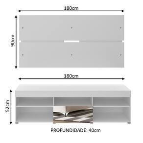 Itens inclusos: - Um (1) Rack de 52 cm de altura x 180 cm de largura x 40 cm de profundidade - Um (1) Painel de 90 cm de altura x 180 cm de largura