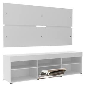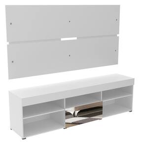 O painel para TV tem um ótimo tamanho e comporta TVs de até 65 polegadas. Ele é separado do rack podendo ser fixado na altura desejada. Para completar, possui espaço para passar os fios.