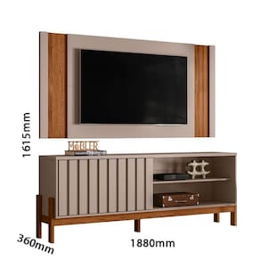 Sua sala ficará ainda muito mais charmosa e acolhedora com este conjunto. Produto Montado: Sim Acabamento: Pintura UV Acabamento da Porta: Pintura UV Acabamento da Prateleira: Pintura UV Acabamento dos Pés: Pintura Altura do Conjunto: 161,5 cm Altura do Painel: 90 cm Altura do Rack: 71,5 cm Altura dos Pés: 19,8 cm Altura Máxima dos Pés: 19.8000 Ambiente Principal: Sala de Estar codigo_ean: 7900288188144 Complexidade da Montagem: Alta: deve ser montado por um montador especializado Cor: Grigio Fosco/Cinamomo Mel Cor do Produto: Grigio Fosco/Cinamomo Mel Cor Interna: Grigio Fosco Escala de Brilho: Semi-Fosco Escala de Brilho da Porta: Fosco Escala de Brilho da Prateleira: Fosco Espessura do Painel: 3 cm Espessura do Tampo: 25 mm Fixação na Parede: Sim Ideal para TVs até (Polegadas): 65 Informações Complementares: A bancada possui pés e tampo de 25mm, porta ripada de correr. o painel em mdp e pintura uv, painel suporta tv de até 65". Itens Inclusos: 1 Painel, 1 Rack, Kit Ferragem e Termo Encolhível Largura do Conjunto: 188 cm Largura do Painel: 180 cm Largura do Rack: 188 cm Linha ou Coleção: New Aurora Manual de Montagem e Instalação: https://product-hub-prd.madeiramadeira.com.br/338479406/documents/7012d4ce-2d06-48ca-a17d-5bbfaabc71803048377277817515611632056.pdf Marca: Mobler Material da Porta: MDP Material da Prateleira: MDP Material dos Pés: MDP Material Principal: MDP Necessita Montagem: Sim Origem do Produto: Nacional Peso do Painel: 20 kg Peso do Rack: 38 kg Peso Máximo por Prateleira: 3 kg Possui Adega: Não Possui Espelho: Não Possui iluminação: Não Possui Passa Cabos: Sim Possui Pés: 05 Possui Portas: Sim Possui Prateleiras: Sim Possui Tomada: Não Possui Vidro: Não Profundidade do Conjunto: 36 cm Profundidade do Painel: 3.0000 Profundidade do Rack: 36 cm Quantidade de Nichos: 02 Recomendações de Uso, Manutenção e Limpeza: Para conservar a aparência e a durabilidade do produto utilizar pano macio e úmido, não usar solventes ou abrasivos Sapatas Niveladoras: Não Sistema de Montagem: Pregos, parafusos e cavilhas Suporte de TV Universal Incluso: Não Tipo de Dobradiça/Corrediça da Porta: Plástica Tipo de Puxador da Porta: Embutido