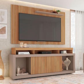 O(a) Rack com Painel para TV Até 65 Polegadas New Oscar 2 Portas Ripado Marrom/Cinza - Caemmun é produzido em MDF e MDP na escala de brilho Fosco, e possui um grau de dificuldade de montagem: Médio.