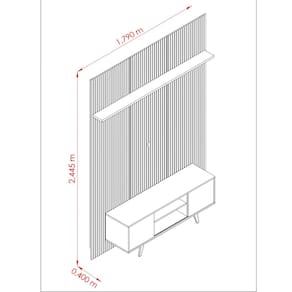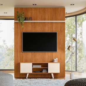 Painel em MDF frisado (baixo relevo), portas deslizantes frisadas que se sobrepõem, pés retrô e estrutura com chapas em MDP e MDF de 1,2cm, 1,5cm e 2,5cm. Portas deslizantes; Paineis em MDP 1,2cm, 1,5cm e 2,5cm; Fixação com minifix. Produto Montado: Sim Acabamento: Pintura UV Acabamento da Porta: Pintura UV Acabamento da Prateleira: Pintura UV Acabamento dos Pés: Pintura Altura do Painel: 244,5 cm Altura do Rack: 54 cm Altura dos Pés: 7 cm Altura Máxima dos Pés: 7.0000 Ambiente Principal: Sala de Estar codigo_ean: 7900288101303 Complexidade da Montagem: Média: pode ser montado por mais de uma pessoa e/ou necessite de maior conhecimento para montagem Cor: Cinamomo/Off White Cor do Produto: Cinamomo/Off White Escala de Brilho: Semi-Brilho Escala de Brilho da Porta: Semi-Brilho Escala de Brilho da Prateleira: Semi-Brilho Espessura do Painel: 18,5 cm Espessura do Tampo: 15 mm Ideal para TVs até (Polegadas): 65 Itens Inclusos: 1 Rack + 1 Painel + Manual de Montagem + Kit Ferragens Largura do Painel: 179 cm Largura do Rack: 136 cm Manual de Especificação Técnica: https://product-hub-prd.madeiramadeira.com.br/982069/documents/29bc5e46-cce3-43c4-af14-27e78d0c6985275776382617425651589085.pdf Manual de Montagem e Instalação: https://product-hub-prd.madeiramadeira.com.br/982069/documents/f42c248c-5fad-44ed-9a90-9b7b8610acbd275776182617425651548318.pdf Marca: Madetec Material da Porta: MDP Material da Prateleira: MDP Material dos Pés: MDP Material Principal: MDF/MDP Necessita Montagem: Sim Peso do Painel: 75,3 kg Peso do Rack: 19,7 kg Peso Máximo por Prateleira: 5 kg Possui Espelho: Não Possui iluminação: Não Possui Passa Cabos: Sim Possui Pés: 04 Possui Portas: Sim Possui Tomada: Não Possui Vidro: Não Profundidade do Painel: 18.5000 Profundidade do Rack: 36,5 cm Quantidade de Nichos: Não Recomendações de Uso, Manutenção e Limpeza: "Para a limpeza utilizar um pano limpo e seco. Não limpar com produtos abrasivos ou escovas;Não deixar exposta à luz do sol diretamente pois isso irá diminuir a vida útil do produto;Este produto Não é recomendado Para ambientes externos onde possa receber chuva." Sapatas Niveladoras: Não Sistema de Montagem: Girofix Suporte de TV Universal Incluso: Não Tipo de Dobradiça/Corrediça da Porta: Plástica Tipo de Puxador da Porta: Embutido