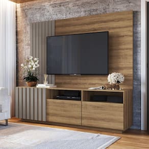 O Rack com Painel RNPL180 é produzido em MDP 15mm, possui 3 portas, sendo que uma delas possui detalhe ripado que torna o móvel ainda mais elegante e diferenciado. Este móvel conta com 2 nichos para você colocar seus eletrônicos e pertences e com amplo espaço interno nas portas e no tampo suportando Tv até 65 polegadas. Acabamento: Finish Foil Acabamento da Porta: Finish Foil Acabamento dos Pés: Finish Foil Acompanha Manual de Instalação: Sim Altura do Conjunto: 164 Altura do Painel: 109 Altura do Rack: 55 Altura dos Pés: 5 Ambiente Principal: Sala de Estar Complexidade da Montagem: Média: pode ser montado por mais de uma pessoa e/ou necessite de maior conhecimento para montagem Cor: Mel/Fumê Cor do Produto: Mel/Fumê Cor Flex: Não Cor Interna: Mel/Fumê Escala de Brilho: Fosco Escala de Brilho da Porta: Fosco Espessura do Painel: 4.5 Ideal para TVs até (Polegadas): 65 Itens Inclusos: 1 Rack com Painel, 1 Kit Ferragens e 1 Manual de Montagem Largura do Painel: 180 Largura do Rack: 180 Linha ou Coleção: Sala de Estar Manual de Montagem e Instalação: https://cdn2.madeiramadeira.com.br/atributo/prodecor-moveis/1504362-7898970136842-6-manual-rnpl180.pdf Material da Porta: MDP Material dos Pés: MDP Material Principal: MDP Montagem Flex: Não Necessita Montagem: Sim Origem do Produto: Nacional Peso do Painel: 26 Peso do Rack: 35 Possui Adega: Não Possui Espelho: Não Possui iluminação: Não Possui Pés: Rodapé Possui Portas: 03 Possui Prateleiras: Não Possui Tomada: Não Possui Vidro: Não Profundidade do Rack: 40 Quantidade de Nichos: 02 Recomendações de Uso, Manutenção e Limpeza: Para a limpeza do móvel utilizar pano levemente umedecido Sapatas Niveladoras: Não Sistema de Montagem: Parafusos e Cavilhas Suporte de TV Universal Incluso: Não Tipo de Dobradiça/Corrediça da Porta: Metálica Tipo de Porta: Misto (Bater e Basculante) Tipo de Puxador da Porta: Embutido Marca: Prodecor Ean: 7909903405840