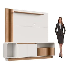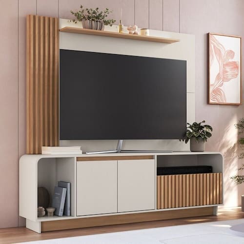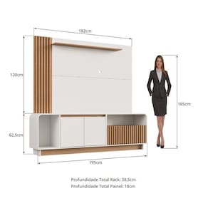 1x Painel para Tv 65 Polegadas com Detalhe Ripado Arkansas Freijó/Off White Largura: 182 cm Altura: 120 cm Peso: 27,2 kg Profundidade: 18 cm