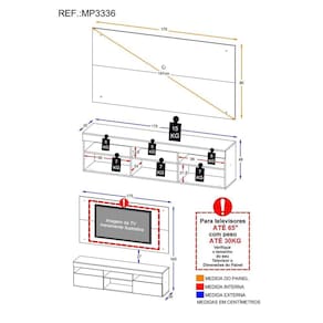*Devido as variações de tamanho dos televisores no mercado, sugerimos que verifique as medidas da sua TV e compare com o painel antes de efetuar a compra.