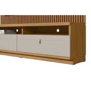 O Conjunto Rack com Painel Ouro Preto foi projetado para TVde até 75 polegadas. Possui tampo de 37mm de espessura, 2 gavetas com corrediças telescópicas e puxadores em couro. Conta ainda com uma prateleira superior para dispor objetos decorativos. O painel todo com detalhes em ripado deixa o ambiente ainda mais moderno. Acabamento: Pintura UV Acabamento da Gaveta: Pintura UV Acabamento da Prateleira: Pintura UV Acompanha Lâmpada: 01 Altura do Painel: 145 cm Altura do Rack: 53 cm Ambiente Principal: Sala de Estar Complexidade da Montagem: Média: pode ser montado por mais de uma pessoa e/ou necessite de maior conhecimento para montagem Cor: Marrom/Off White Cor do Produto: Marrom/Off White Escala de Brilho: Fosco Escala de Brilho da Prateleira: Fosco Espessura do Painel: 17 cm Gaveta com Chave: Não Ideal para TVs até (Polegadas): 75 Itens Inclusos: 1 Conjunto Rack com Painel, Manual de Montagem e Kit de Ferragem. Largura do Painel: 180 cm Largura do Rack: 180 cm Manual de Montagem e Instalação: https://cdn2.madeiramadeira.com.br/atributo/linea-brasil/1211306-rack-ouro-preto-painel.pdf Material da Gaveta: MDF/MDP Material da Prateleira: MDP Material Principal: MDF/MDP Necessita Montagem: Sim Origem do Produto: Nacional Painel para TV Integrado: Sim Peso: 84.5 Peso do Painel: 35 kg Peso do Rack: 53 kg Peso Máximo por Gaveta: 3 Peso Máximo por Prateleira: 3 Possui Espelho: Não Possui iluminação: Sim Possui Nichos: 02 Possui Pés: Não Possui Portas: Não Possui Prateleiras: 01 Possui Tomada: Não Profundidade do Rack: 41 cm Recomendações de Uso, Manutenção e Limpeza: Realizar a limpeza com um pano levemente umedecido em água. Sistema de Montagem: Cavilhas, Parafusos e Minifix Suporte de TV Universal Incluso: Não Tipo de Corrediça da Gaveta: Metálica Telescópica Tipo de Dobradiça/Corrediça da Porta: Metálica Tipo de Puxador da Gaveta: Externo