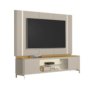 Características: 2 Nichos 2 Portas com detalhe arredondado e chanfrado Detalhes Curvos Dobradiça com amortecedor caneca 35mm Estrutura em MDF 15mm Ideal para TVs de até 75 polegadas Moldura curva revestida canelada Pés e dobradiças Metálicas Possui passa fios e fita de LED Prateleira de vidro 1210x330x6mm Tampo com detalhe arredondado 9mm Tampo flex