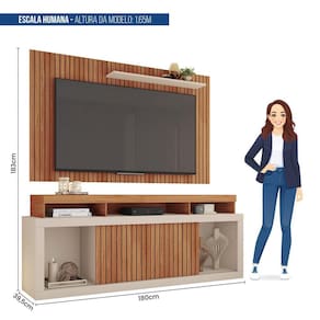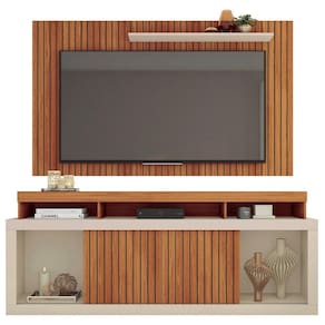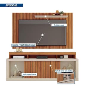 O conjunto Rack e Painel New Oscar Caemmun é a peça ideal para quem deseja modernidade e sofisticação em sua sala de estar, o painel conta com desenho ripado em 3d, proporcionando sensação de aconchego para o seu ambiente e, Um combo funcional e moderno que harmoniza facilmente com diversas decorações.Produzido em MDP e MDF que oferecem resistência e durabilidade ao móvel, esta peça é perfeita para organizar e decorar o seu ambiente. Produto Montado: Sim Acabamento: Pintura UV Acabamento da Porta: Pintura UV Acabamento da Prateleira: Pintura UV Acompanha Manual de Instalação: Sim Altura do Conjunto: 174 cm Altura do Painel: 100 cm Altura do Rack: 74 cm Altura dos Pés: 3 cm Altura Máxima dos Pés: 3.0000 Ambiente Principal: Sala de Estar codigo_ean: 7909903545218 Complexidade da Montagem: Média: pode ser montado por mais de uma pessoa e/ou necessite de maior conhecimento para montagem Cor: Freijó/Off White Cor do Produto: Freijó/Off White Cor Flex: Não Cor Interna: Freijó Escala de Brilho: Fosco Escala de Brilho da Porta: Fosco Escala de Brilho da Prateleira: Fosco Espessura do Painel: 15,1 cm Ideal para TVs até (Polegadas): 65 Itens Inclusos: 1 Painel com Rack, Kit Ferragens e Manual de Montagem Largura do Painel: 168 cm Largura do Rack: 180 cm Manual de Montagem e Instalação: https://product-hub-prd.madeiramadeira.com.br/878440/documents/def60bff-5d65-486e-85e1-d16e7fedc11581312515esquemanewoscaredb.pdf Material da Porta: MDF Material da Prateleira: MDP Material do Puxador da Porta: MDF Material dos Pés: Plástico Material Principal: MDF/MDP Montagem Flex: Não Necessita Montagem: Sim Origem do Produto: Nacional Peso do Painel: 24,55 kg Peso do Rack: 37,5 kg Peso Máximo por Prateleira: 3 kg Possui Adega: Não Possui Espelho: Não Possui iluminação: Não Possui Pés: 08 Possui Portas: Sim Possui Prateleiras: Sim Possui Tomada: Não Possui Vidro: Não Profundidade do Painel: 15.1000 Profundidade do Rack: 39,5 cm Quantidade de Nichos: 05 Recomendações de Uso, Manutenção e Limpeza: Limpar com pano macio levemente umedecido e em seguida pano macio seco. Não utilizar produtos abrasivos (lixas, esponjas) e/ou produtos a base de solventes (thinner, aguarrás). Rodízio com Trava: Sim Sapatas Niveladoras: Não Sistema de Montagem: Minifix, Cavilhas, Parafusos Suporte de TV Universal Incluso: Não Tipo de Dobradiça/Corrediça da Porta: Metálica Tipo de Puxador da Porta: Embutido