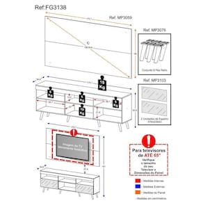 Devido as variações de tamanho dos televisores no mercado, sugerimos que verifique as medidas da sua TV e compare com o painel antes de efetuar a compra.