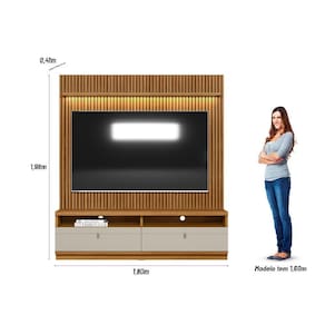 O Conjunto Rack com Painel Ouro Preto foi projetado para TV de até 75 polegadas. Possui tampo de 37mm de espessura, 2 gavetas com corrediças telescópicas e puxadores em couro. Conta ainda com uma prateleira superior para dispor objetos decorativos. O painel todo com detalhes em ripado deixa o ambiente ainda mais moderno. Características: Marca: Linea Brasil Modelo: Rack com Painel Ripado Ouro Preto Linea Brasil Espaço útil no painel: 1,80m largura x 1,22m altura x 0,38m profundidade Espaço para TV no Painel até 75 polegadas Material: MDP/MDFTampo: MDP com espessura de 37mmNichos : 2Passa Fios : 3 Portas: não há Gavetas: 2 gavetas Prateleiras: 1 prateleira em MDP 25mmPés: não há Puxadores : 2 puxadores em couro Luminária: 1 fita de Led Corrediça: 4 corrediças telescópicasDimensões:Altura: 1,98m Largura: 1,80m Profundidade: 0,41m Peso Bruto: 88,0 kgQuantidade de volumes: 3Garantia do Fornecedor: 3 meses.
