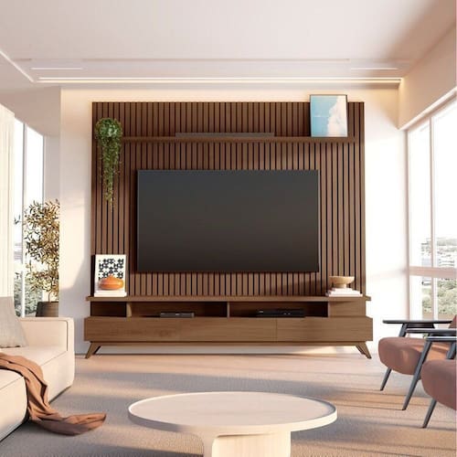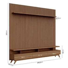 O Rack com painel Yucca combina elegância e versatilidade em um só produto. Com o painel ripado em relevo de 15mm e estrutura em MDF 15mm, oferece resistencia e sofisticado. Já o rack possui estrutura em MDF, tampo de 40 mm, pés em madeira maciça e acabamento em pintura UV. Suporta TVs de até 85?, possui gavetas com corrediças telescópicas. O móvel ideal para transformar sua sala com design contemporâneo e funcionalidade. Produto Montado: Sim Acabamento: Pintura UV Acabamento da Gaveta: Impressão Acabamento da Prateleira: Impressão Acabamento dos Pés: Verniz Acompanha Manual de Instalação: Sim Altura do Conjunto: 270 cm Altura do Painel: 250 cm Altura do Rack: 62 cm Altura dos Pés: 20 Altura Máxima dos Pés: 20.0000 Ambiente Principal: Sala de Estar codigo_ean: 7900288239723 Complexidade da Montagem: Média: pode ser montado por mais de uma pessoa e/ou necessite de maior conhecimento para montagem Cor: Cedro Cor do Produto: Cedro Cor Flex: Não Cor Interna: Cedro Escala de Brilho: Semi-Brilho Escala de Brilho da Gaveta: Semi-Brilho Escala de Brilho da Prateleira: Semi-Brilho Espessura do Tampo: 42 mm Fixação na Parede: Sim Gaveta com Chave: Não Ideal para TVs até (Polegadas): 84 Informação Complementar: 1x Painel para Tv até 85 Polegadas 230x250cm 100% Mdf Aloe Cabecasa Madeiramadeira Cedro Largura: 230,5 cm Altura: 250 cm Peso: 89,99 kg Profundidade: 20,5 cm Necessita Montagem: Sim