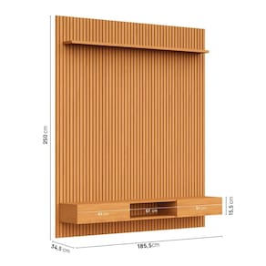 O Rack com Painel Aloe une elegância e funcionalidade. Com painel ripado em relevo de 15 mm, estrutura em MDF 15mm e portas com dobradiças com amortecimento, oferece sofisticação e praticidade. Disponível para TVs de até 72” e em acabamentos amadeirados Âmbar e Marrom, que seguem as tendências atuais do design. Produto Montado: Sim Acabamento: Pintura UV Acabamento da Porta: Impressão Acabamento da Prateleira: Impressão Acompanha Manual de Instalação: Sim Altura do Conjunto: 250 cm Altura do Painel: 250 cm Altura do Rack: 15,5 cm Ambiente Principal: Sala de Estar codigo_ean: 7900288231079 Complexidade da Montagem: Média: pode ser montado por mais de uma pessoa e/ou necessite de maior conhecimento para montagem Cor: Marrom Cor do Produto: Marrom Cor Interna: Marrom Escala de Brilho: Semi-Brilho Escala de Brilho da Porta: Semi-Brilho Escala de Brilho da Prateleira: Semi-Brilho Espessura do Painel: 20,5 cm Espessura do Tampo: 15 mm Fixação na Parede: Sim Ideal para TVs até (Polegadas): 72 Itens Inclusos: 1 Rack, Manual de Montagem e Kit Ferragens Largura do Conjunto: 185,5 cm Largura do Painel: 185,5 cm Largura do Rack: 178 cm Linha ou Coleção: Aloe Manual de Montagem e Instalação: https://product-hub-prd.madeiramadeira.com.br/217551749/documents/b0487d47-6cb2-474f-9f07-cdf9748dda183215658600517582234836764.pdf Marca: CabeCasa MadeiraMadeira Material da Porta: MDF Material da Prateleira: MDF Material do Puxador da Porta: MDF Material Principal: MDF Necessita Montagem: Sim Origem do Produto: Nacional Peso do Painel: 75,03 kg Peso do Rack: 17,02 kg Peso Máximo por Prateleira: 5 kg Possui Adega: Não Possui Espelho: Não Possui iluminação: Não Possui Passa Cabos: Sim Possui Pés: Suspenso Possui Portas: Sim Possui Prateleiras: Sim Possui Tomada: Não Possui Vidro: Não Profundidade do Conjunto: 36,2 cm Profundidade do Painel: 20.5000 Profundidade do Rack: 31,5 cm Quantidade de Nichos: 01 Recomendações de Uso, Manutenção e Limpeza: A limpeza deve ser feita com pano macio, levemente umedecido com água e sabão neutro. Em seguida, passe um pano seco para evitar o acúmulo de umidade. Nunca utilize produtos abrasivos, esponjas de aço, alvejantes, álcool em excesso ou solventes, pois esses produtos podem agredir o acabamento e comprometer sua aparência. Sistema de Montagem: Parafusos, cavilhas e minifix Suporte de TV Universal Incluso: Não Tipo de Dobradiça/Corrediça da Porta: Metálica Tipo de Puxador da Porta: Embutido