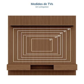 O Rack com Painel Aloe une elegância e funcionalidade. Com painel ripado em relevo de 15 mm, estrutura em MDF 15mm e portas com dobradiças com amortecimento, oferece sofisticação e praticidade. Disponível para TVs de até 85” e em acabamentos amadeirados Âmbar e Marrom, que seguem as tendências atuais do design. Produto Montado: Sim Acabamento: Impressão Acabamento da Porta: Impressão Acabamento da Prateleira: Impressão Acompanha Manual de Instalação: Sim Altura do Conjunto: 250 cm Altura do Painel: 250 cm Altura do Rack: 15,5 cm Ambiente Principal: Sala de Estar codigo_ean: 7900288231109 Complexidade da Montagem: Média: pode ser montado por mais de uma pessoa e/ou necessite de maior conhecimento para montagem Cor: Cedro Cor do Produto: Cedro Cor Interna: Cedro Escala de Brilho: Semi-Brilho Escala de Brilho da Porta: Semi-Brilho Escala de Brilho da Prateleira: Semi-Brilho Espessura do Painel: 20,5 cm Espessura do Tampo: 15 mm Fixação na Parede: Sim Ideal para TVs até (Polegadas): 84 Itens Inclusos: 1 Rack, Manual de Montagem e Kit Ferragens Largura do Conjunto: 230,5 cm Largura do Painel: 230,5 cm Largura do Rack: 218 cm Linha ou Coleção: Aloe Manual de Montagem e Instalação: https://product-hub-prd.madeiramadeira.com.br/698808462/documents/89690fb8-fc50-4e3e-a5ed-bfcebbb9949a3215916600517582243782236.pdf Marca: CabeCasa MadeiraMadeira Material da Porta: MDF Material da Prateleira: MDF Material do Puxador da Porta: MDF Material Principal: MDF Necessita Montagem: Sim Origem do Produto: Nacional Peso do Painel: 89,99 kg Peso do Rack: 20,48 kg Peso Máximo por Prateleira: 5 kg Possui Adega: Não Possui Espelho: Não Possui iluminação: Não Possui Passa Cabos: Sim Possui Pés: Suspenso Possui Portas: Sim Possui Prateleiras: Sim Possui Tomada: Não Possui Vidro: Não Profundidade do Conjunto: 36,2 cm Profundidade do Painel: 20.5000 Profundidade do Rack: 31,5 cm Quantidade de Nichos: 01 Recomendações de Uso, Manutenção e Limpeza: A limpeza deve ser feita com pano macio, levemente umedecido com água e sabão neutro. Em seguida, passe um pano seco para evitar o acúmulo de umidade. Nunca utilize produtos abrasivos, esponjas de aço, alvejantes, álcool em excesso ou solventes, pois esses produtos podem agredir o acabamento e comprometer sua aparência. Sistema de Montagem: Parafusos, cavilhas e minifix Suporte de TV Universal Incluso: Não Tipo de Dobradiça/Corrediça da Porta: Metálica Tipo de Puxador da Porta: Embutido