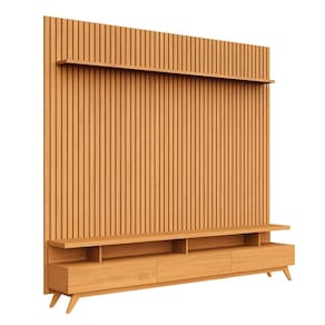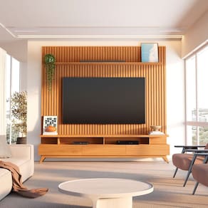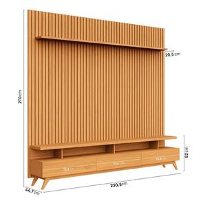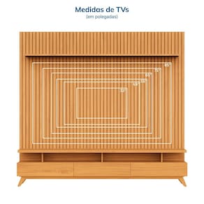 O Rack com painel Yucca combina elegância e versatilidade em um só produto. Com o painel ripado em relevo de 15mm e estrutura em MDF 15mm, oferece resistencia e sofisticado. Já o rack possui estrutura em MDF, tampo de 40 mm, pés em madeira maciça e acabamento em pintura UV. Suporta TVs de até 85", possui gavetas com corrediças telescópicas. O móvel ideal para transformar sua sala com design contemporâneo e funcionalidade. Produto Montado: Sim Acabamento: Pintura UV Acabamento da Gaveta: Pintura UV Acabamento da Prateleira: Pintura UV Acabamento dos Pés: Verniz Acompanha Manual de Instalação: Sim Altura do Painel: 250 cm Altura do Rack: 62 cm Altura dos Pés: 20 cm Altura Máxima dos Pés: 20.0000 Ambiente Principal: Sala de Estar codigo_ean: 7900288265609 Complexidade da Montagem: Média: pode ser montado por mais de uma pessoa e/ou necessite de maior conhecimento para montagem Cor: Marrom Cor do Produto: Marrom Escala de Brilho: Semi-Brilho Escala de Brilho da Gaveta: Semi-Brilho Escala de Brilho da Prateleira: Semi-Brilho Espessura do Painel: 20,5 cm Espessura do Tampo: 42 mm Fixação na Parede: Sim Gaveta com Chave: Não Ideal para TVs até (Polegadas): 84 Itens Inclusos: 1 Rack, 1 Painel Manual de Montagem e Kit Ferragens Largura do Painel: 230,5 cm Largura do Rack: 217 cm Manual de Montagem e Instalação: https://product-hub-prd.madeiramadeira.com.br/605361085/documents/e8ae7461-10a7-4081-9ee3-74182f306b1a3278503600517607242054088.pdf Marca: CabeCasa MadeiraMadeira Material da Gaveta: MDF Material da Prateleira: MDF Material dos Pés: Eucalipto Material Principal: MDF Necessita Montagem: Sim Origem do Produto: Nacional Peso do Painel: 89,99 kg Peso do Rack: 56,09 kg Peso Máximo por Gaveta: 5 kg Peso Máximo por Prateleira: 5 kg Possui Adega: Não Possui Espelho: Não Possui iluminação: Não Possui Passa Cabos: Sim Possui Pés: 05 Possui Portas: Não Possui Prateleiras: Sim Possui Tomada: Não Possui Vidro: Não Profundidade do Painel: 20.5000 Profundidade do Rack: 40 cm Quantidade de Gavetas: 03 Gavetas Quantidade de Nichos: 01 Recomendações de Uso, Manutenção e Limpeza: A limpeza deve ser feita com pano macio, levemente umedecido com água e sabão neutro. Em seguida, passe um pano seco para evitar o acúmulo de umidade. Nunca utilize produtos abrasivos, esponjas de aço, alvejantes, álcool em excesso ou solventes, pois esses produtos podem agredir o acabamento e comprometer sua aparência. Sapatas Niveladoras: Não Sistema de Montagem: Parafusos, cavilhas e minifix Suporte de TV Universal Incluso: Não Tipo de Corrediça da Gaveta: Metálica Telescópica Tipo de Puxador da Gaveta: Embutido