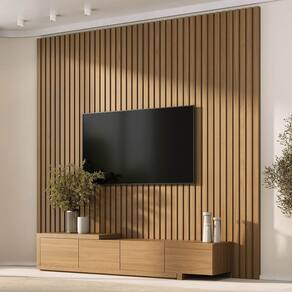 O Rack com painel Aruá traz a essência do estilo japandi, inspirado na simplicidade oriental e no equilíbrio entre forma e função. O rack possui um design baixo com acabamento em Jatobá, ferragens premium, unindo sofisticação e praticidade. Já os painéis são produzidos em chapas de 15mm e oferecem modularidade e personalização do espaço. Versáteis, podem ser utilizados como revestimentos de parede ou painéis de TV, transformando o ambiente com harmonia e elegância. Produto Montado: Sim Acabamento: Finish Foil Acabamento da Porta: Finish Foil Acabamento dos Pés: Finish Foil Altura do Conjunto: 250 cm Altura do Painel: 250 cm Altura do Rack: 35,7 cm Altura dos Pés: 5.5 Altura Máxima dos Pés: 5.5000 Ambiente Principal: Sala de Estar codigo_ean: 7900288310149 Complexidade da Montagem: Média: pode ser montado por mais de uma pessoa e/ou necessite de maior conhecimento para montagem Cor: Jatobá Cor do Produto: Jatobá Escala de Brilho: Semi-Fosco Escala de Brilho da Porta: Semi-Fosco Espessura do Painel: 4,5 cm Espessura do Tampo: 40 mm Fixação na Parede: Sim Itens Inclusos: Painel com Rack, Manual de Montagem e Kit Ferragens Largura do Conjunto: 240 cm Largura do Painel: 240 cm Largura do Rack: 244 cm Linha ou Coleção: Aruá Manual de Montagem e Instalação: https://product-hub-prd.madeiramadeira.com.br/895154158/documents/44c02364-d7fb-4501-bf56-531dcc8be1213356695600517684227673591.pdf Marca: CabeCasa MadeiraMadeira Material da Porta: MDP Material do Puxador da Porta: Plástico Material dos Pés: MDP Material Principal: MDP Montagem Flex: Sim, aparador monta o lado esquerdo e direito Necessita Montagem: Sim Origem do Produto: Nacional Peso do Painel: 117,75 kg Peso do Rack: 44,45 kg Possui Espelho: Não Possui iluminação: Não Possui Passa Cabos: Não Possui Pés: 01 Possui Prateleiras: Não Possui Tomada: Não Possui Vidro: Não Profundidade do Conjunto: 40,5 cm Profundidade do Rack: 36 cm Recomendações de Uso, Manutenção e Limpeza: A limpeza deve ser feita com pano macio, levemente umedecido com água e sabão neutro. Em seguida, passe um pano seco para evitar o acúmulo de umidade. Nunca utilize produtos abrasivos, esponjas de aço, alvejantes, álcool em excesso ou solventes, pois esses produtos podem agredir o acabamento e comprometer sua aparência. Sapatas Niveladoras: Não Sistema de Montagem: Parafusos e cavilhas Suporte de TV Universal Incluso: Não Tipo de Dobradiça/Corrediça da Porta: Metálica Tipo de Porta: Basculante Tipo de Puxador da Porta: Embutido