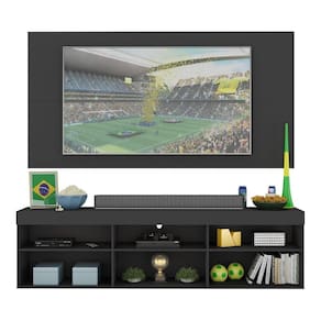 Produzido em MDP com pintura UV, que garante maior durabilidade e facilidade na limpeza, possui espaço para os equipamentos eletrônicos e nichos para objetos decorativos, além de duas portas articuladas com um amplo espaço interno para manter seus pertences organizados. O painel para TV até 65 possui espaçamento para passagem dos fios, que permite deixar os cabos mais organizados. Devido as variações de tamanho dos televisores no mercado, sugerimos que verifique as medidas da sua TV e compare com o painel antes de efetuar a compra.