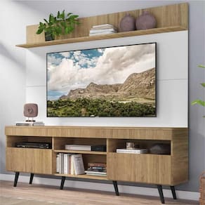 O Rack com Painel TV 65" Madri Multimóveis Pés Retrô e Prateleira é produzido em MDP com acabamento acetinado, que garante maior durabilidade e facilidade na limpeza. Possui 4 nichos com espaço para os equipamentos eletrônicos e objetos decorativos, 2 portas articuladas com um amplo espaço interno para manter seus pertences organizados e os pés palito, estilo retrô, em polipropileno, que dão um charme especial ao móvel deixando-o com um visual leve e permitindo você compor um ambiente com ar vintage e moderno ao mesmo tempo. O painel para TV de até 65 (suporta até 30 kg) com espaçamento para passagem dos fios, que permite deixar os cabos mais organizados e o visual clean, ainda possui uma prateleira para os objetos decorativos. Sua sala bonita e confortável para curtir os melhores filmes e séries.