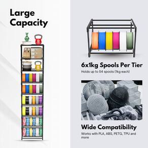 O rack de armazenamento de filamentos para impressoras 3D Razzi Fidel oferece uma solução eficiente, flexível e durável projetada para estúdios, escritórios e oficinas de impressão 3D. Ele apresenta um design ajustável de 9 camadas, permitindo que você personalize o número de camadas e a altura de acordo com suas necessidades de armazenamento, tornando-o ideal para vários tamanhos de espaço de trabalho. Quando totalmente montado, o rack pode conter bobinas de filamento de até 54 x 1 kg, tornando-o perfeito para armazenamento de alta capacidade. Fácil de montar Este rack de armazenamento de filamentos foi projetado pensando na conveniência do usuário. Mesmo que você não tenha experiência anterior, você pode montá-lo de forma rápida e fácil com o manual de instruções incluído. Nenhuma ferramenta é necessária, garantindo um processo de montagem sem complicações. Suporta vários tamanhos de filamento Cada camada apresenta duas opções de espaçamento diferentes para acomodar uma variedade de tamanhos de filamento, incluindo bobinas de filamento de 300 g, 500 g e 1 kg. Esse recurso garante que seus filamentos sejam armazenados com segurança, evitando o emaranhamento e mantendo seus materiais organizados. Durável e prático Cada camada é avaliada para suportar até 30 libras, tornando o rack extremamente durável e estável. Construído com tubos metálicos de alta qualidade e materiais ABS, o rack é resistente à corrosão e ao desgaste, garantindo um uso duradouro sem dobrar ou perder a integridade estrutural. Versátil e eficiente O rack de armazenamento de filamentos da impressora 3D Razzi Fidel foi projetado para acomodar uma variedade de filamentos de impressão 3D, incluindo ABS, PLA, TPU, PETG, nylon e muito mais. Ele ajuda você a organizar suas bobinas de filamento com eficiência, garantindo fácil acesso aos materiais de que você precisa e minimizando o desperdício durante seus projetos de impressão 3D. Seja você um amador ou um profissional, o rack de armazenamento Razzi Fidel é uma ferramenta indispensável para seu espaço de trabalho de impressão 3D. Isso manterá sua área de trabalho organizada, melhorará sua eficiência e tornará seu processo de impressão 3D mais organizado e simplificado. - [Dimensões especiais para armazenamento de filamentos]: medindo 80,7" de altura no total, com cada camada medindo 24,8" (L) x 11,8" (P) x 9" (A). - [Design de alta capacidade]: cada camada suporta até 30 libras de peso e pode conter bobinas de filamento de até 6 × 1 kg, permitindo uma capacidade total de bobinas de filamento de até 54 × 1 kg, perfeitamente adequadas para necessidades de armazenamento em grande escala. - [Design modular de camadas]: com uma estrutura de 9 camadas que pode ser empilhada livremente para ajustar o número de camadas, esse rack se adapta facilmente a vários espaços e necessidades do usuário. - [Suporta vários tamanhos de filamento]: Cada camada tem duas opções de espaçamento diferentes para acomodar bobinas de filamento de 300 g, 500 g e 1 kg, garantindo o armazenamento estável de vários tipos de filamento. - [Montagem fácil]: O rack foi projetado para uma montagem simples. Nenhuma ferramenta é necessária e um manual de instruções detalhado está incluído para garantir uma configuração rápida e sem complicações. - [Materiais duráveis]: Feito de tubos de metal de alta qualidade e material ABS, o rack é resistente à corrosão, ao desgaste e construído para durar para uso a longo prazo sem deformar ou afrouxar. - [Ampla faixa de aplicação]: Adequado para estúdios de impressão 3D, escritórios, oficinas e outros ambientes, este rack ajuda você a organizar seus materiais de impressão 3D, mantendo seu espaço de trabalho organizado e eficiente.