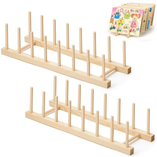 2 x prateleiras de armazenamento de quebra-cabeças de madeira