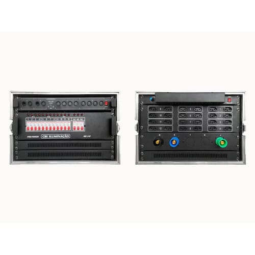 Rack de energia completo tipo 4 O sistema main power cbi iluminação suporta grandes cargas e monitora o consumo e a distribuição de energia Elétrica. Proporciona segurança em instalações temporárias ou fixas, em eventos de pequeno a grande porte. Produzimos sistemas main power robustos utilizando nossa linha de equipamentos de iluminação profissional, com as mais diversas. Configurações: Mini sistema main power em case 7 unidades de rack ur Splitter: s.008 02 entradas e 08 saídas Módulo disjuntores: 12 canais, 4kw Luminária: led Painel com 3 conectores cam lock 400a 2 fases + terra