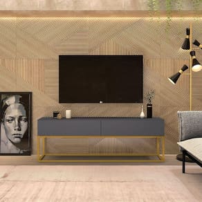 Rack De Sala De Estar Para Tv 50 Polegadas Com 2 Gavetas - Cinza