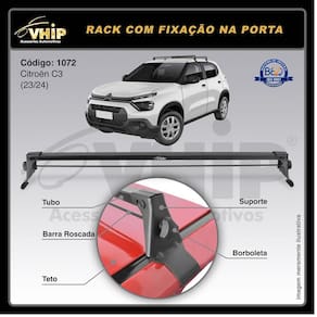 A VHIP desenvolveu esse rack sob rigoroso controle de qualidade, cujo processo industrial, segue os padrÃes de seguranÃa, com acompanhamento e supervisÃo tÃcnica contÃnua, visando proporcionar ao consumidor, uma excelente alternativa no transporte de bagagens ou cargas.  Especificaãão TÃCNICA:  Projetado e desenvolvido para suportar atà 45 kg de peso mÃximo, desde que distribuÃdo de forma uniforme e equilibrada;  Manual de instruÃÃes, para orientar a montagem, sua capacidade de transporte, regras de utilizaÃÃo e outros informes;  NÃo amassa e nem risca o veÃculo;  Cor preto;  Fabricado em AÃo;  NÃo exige furaÃÃes;  FÃcil instalaÃÃo;  Ãtimo acabamento;  Excelente resistÃncia.  FICHA TÃCNICA:  Fabricante: VHIP;  Material: Ferro Tubular / AÃo;  Capacidade de carga do rack: 45kg distribuÃdos  Cor: Preto.  Conteãdo DA EMBALAGEM:  2 Racks dianteiro + traseiro ;  Kit InstalaÃÃo;  Manual.