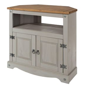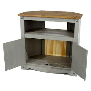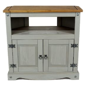 - Acabamento: Cera cor cinza lavado com veios e nós aparentes | Tampo: Cera cor marrom antique.
