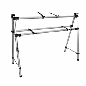 Rack DJ Titanium Racks RA-120 em formato de "A", combarras duplas para equipamento CDJ e mixer em case, e barras em "L" para notebook.