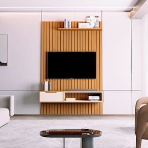 Esse Home Suspenso é perfeito pois possui detalhes ripados garantindo a elegância do seu ambiente. Comporta TVs de até 75 Polegadas.