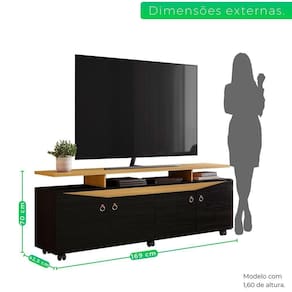 Rack Elogio Candian JCM Movelaria. Movel de qualidade e modernidade, portas com dobradica de pressao, rodizios aparentes, tampo 25mm, puxadores em couro e argola, espaco interno espacos, recomenda-se ate 65 Polegadas.