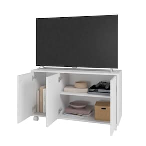 Rack Em Mdp 3 Portas 1 Prateleira E 4 Pés Com Rodízio Brv Móveis Branco Seu cantinho vai ficar ainda mais moderno com o rack 3 portas 1 prateleira. Produzido em MDP 15mm que proporciona uma maior durabilidade com acabamento em BP. Produto ideal para compor o seu ambiente !!!