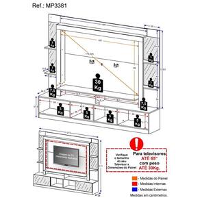 O Rack Estante com Suporte TV 65" e Espelho Oslo Multimóveis é perfeito para você deixar seu ambiente organizado e muito bem decorado. Produzido em MDP, que garante maior durabilidade e facilidade na limpeza, além de um acabamento superior, possui 2 portas articuladas com um excelente espaço interno para organizar seus pertences, prateleiras para que você possa personalizar a decoração e nichos para acomodar todos os equipamentos. Os detalhes com espelhos nas portas e prateleiras deixam o móvel mais requintado, criando um ambiente moderno e charmoso. Os espelhos são de vidro (o que evita que a imagem fique distorcida) e lapidados, ou seja, passam por um processo para que as bordas não fiquem cortantes, o que garante maior segurança. O painel com suporte para TV de até 65 (suporta até 30kg) possui espaçamento para passagem dos fios, que permite deixar os cabos mais organizados. Para facilitar a sua vida, este produto acompanha também o kit para fixação da TV. Muito prático e de fácil instalação, pode ser utilizado para TVs LCD, LED e plasma de 14 a 71. Totalmente sobreposto, acompanha gabarito de montagem que auxilia na instalação. Conta com um sistema de encaixe rápido, possui 16mm de deslocamento que permite o ajuste do encaixe das peças.