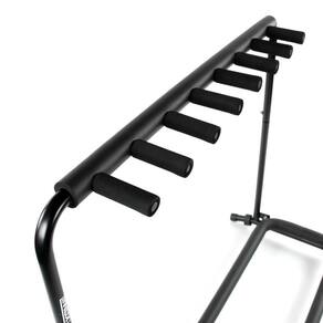 Rack Estante Suporte Para 7 Instrumentos Cordas,Violão,Guitarra-rack dobrável,oferece facilidade para armazenagem.-leve,prático,resistente e seguro.-área de contato bem revestida com espuma de alta qualidade.-não risca,estraga ou causa qualquer dano ao seu instrumento.-dimensões Altura a partir do chão:82,5 cm Largura entre os apoios:10 cm Largura do suporte:86 cm Profundidade do suporte:45 cm-capacidade de instrumentos:7-material:aço e espuma-peso:4,53 Kg-cor:preto-ideal para usar em estúdios,eventos,quartos,igrejas,bares,etc. Violão clássico Violão acústico Guitarra Contra baixo elétrico Obs: Não acompanha qualquer instrumento musical Marca: Aj Som Acessórios Musicais