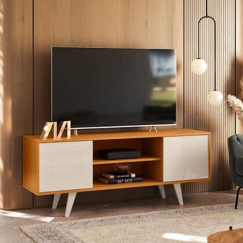 Feito para TVs até 55 polegadas, ele conta com 2 portas e seus dois nichos trazem destaque aos seus objetos decorativos!