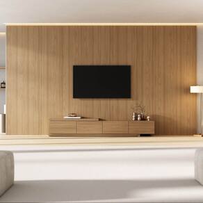 O Rack com painel Aruá traz a essência do estilo japandi, inspirado na simplicidade oriental e no equilíbrio entre forma e função. O rack possui um design baixo com acabamento em Jatobá, ferragens premium, unindo sofisticação e praticidade. Já os painéis são produzidos em chapas de 15mm e oferecem modularidade e personalização do espaço. Versáteis, podem ser utilizados como revestimentos de parede ou painéis de TV, transformando o ambiente com harmonia e elegância. Produto Montado: Sim Acabamento: Finish Foil Acabamento da Porta: Finish Foil Acabamento dos Pés: Finish Foil Altura do Conjunto: 250 cm Altura do Painel: 250 cm Altura do Rack: 35,7 cm Altura dos Pés: 5,5 cm Altura Máxima dos Pés: 5.5000 Ambiente Principal: Sala de Estar codigo_ean: 7900288293763 Complexidade da Montagem: Média: pode ser montado por mais de uma pessoa e/ou necessite de maior conhecimento para montagem Cor: Jatobá Cor do Produto: Jatobá Escala de Brilho: Semi-Fosco Escala de Brilho da Porta: Semi-Fosco Espessura do Painel: 3 cm Espessura do Tampo: 40 mm Fixação na Parede: Sim Itens Inclusos: Painel com Rack, Manual de Montagem e Kit Ferragens Largura do Conjunto: 400 cm Largura do Rack: 210 cm Linha ou Coleção: Aruá Manual de Montagem e Instalação: https://product-hub-prd.madeiramadeira.com.br/649038199/documents/577de305-2f1b-469f-8500-e7b4b86a2dad3342827342817658346603038.pdf Marca: CabeCasa MadeiraMadeira Material da Porta: MDP Material dos Pés: MDP Material Principal: MDP Montagem Flex: Sim, aparador monta o lado esquerdo e direito Necessita Montagem: Sim Origem do Produto: Nacional Peso do Painel: 116,6 kg Peso do Rack: 44,45 kg Possui Espelho: Não Possui iluminação: Não Possui Passa Cabos: Não Possui Pés: 01 Possui Prateleiras: Não Possui Tomada: Não Possui Vidro: Não Profundidade do Conjunto: 40,5 cm Profundidade do Rack: 37,5 cm Recomendações de Uso, Manutenção e Limpeza: A limpeza deve ser feita com pano macio, levemente umedecido com água e sabão neutro. Em seguida, passe um pano seco para evitar o acúmulo de umidade. Nunca utilize produtos abrasivos, esponjas de aço, alvejantes, álcool em excesso ou solventes, pois esses produtos podem agredir o acabamento e comprometer sua aparência. Sapatas Niveladoras: Não Sistema de Montagem: Parafusos e cavilhas Suporte de TV Universal Incluso: Não Tipo de Dobradiça/Corrediça da Porta: Metálica Tipo de Puxador da Porta: Embutido