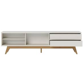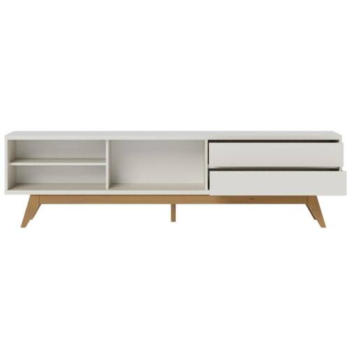 Feito em MDP/MDF 25/15mm. Contém 1 porta deslizante, 2 gavetas com corrediças telescópicas, 1 prateleira e 2 nichos para facilitação da organização de objetos decorativos e eletrônicos.
