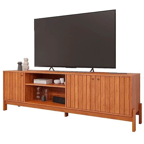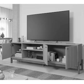 Rack Holanda para TV até 70 Polegadas Ripado 3 Portas Permobili O Rack Holanda para TV até 70 Polegadas Ripado 3 Portas Permobili é a solução perfeita para quem quer um móvel moderno e funcional. Sim, é isso mesmo! Com este rack, você pode organizar a sua sala de estar de forma prática e com muito estilo. As 3 portas ripadas dão um toque especial ao design, tornando-o um item de decoração por si só. Além disso, o rack é ideal para TVs de até 70 polegadas, proporcionando um suporte seguro e estável para a sua tela. E não poderíamos esquecer de mencionar a qualidade do material utilizado. Produzido pela renomada marca Permobili, este rack é resistente e durável, garantindo que você tenha um móvel de alta qualidade por muitos anos. MEDIDAS Altura 63,5 cm Largura 205 cm Profundidade 45 cm CARACTERÍSTICAS Modelo Rack Holanda Tipo do produto Rack Ambiente Sala Fabricante Permobili Estrutura MDF Quantidade de Portas 03 Quantidade de Gavetas Não Possui Tipo de Corrediça Não Possui Tipo de Porta Bater Material Pés Madeira Maciça Ideal para TVs de até 70 Polegadas Quantidade de Nichos 02 Acabamento Pintura U.V. Quantidade de Pés 05 Necessita Montagem Sim Acompanha Manual de Instalação Sim INFORMAÇÕES IMPORTANTES Objetos decorativos que porventura apareçam na foto, não acompanham o produto. Não nos responsabilizamos pela montagem/instalação dos produtos. Montagens, desmontagens e instalações são responsabilidades do cliente. Indicamos que contrate uma empresa de montagem ou um montador de sua confiança. Além disso, favor verificar se os pés e acessórios estão dentro do forro inferior do produto. Em suma, todas as informações divulgadas sobre o produto são de responsabilidade do Fabricante. As cores do produto podem variar de acordo com o seu monitor, a iluminação do ambiente em que você está e até mesmo a sua percepção visual. Além da cor, pequenos detalhes e acabamentos podem não ficar evidentes na foto, por isso as imagens são meramente ilustrativas.