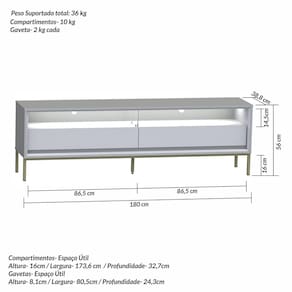 O Rack Ind. Led Fusion é um produto com um design industrial para quem gosta de um estilo mais urbano e contemporâneo, um dos seus diferenciais é um Kit de Neon em Led com luz quente no tampo superior, iluminando todo o Rack, inclusive refletindo esta iluminação em um divisor em vidro, valorizando-o e deixando o ambiente agradável e aconchegante. Nele possui à volta inteira interna peças em MDF com bordas chanfradas, reforçando e valorizando ainda mais o produto. Também apresenta um nicho suspenso com duas gavetas com corrediças telescópicas e passa fio para eletrônicos. Sua estrutura é em MDF e MDP de 15cm e com uma estrutura dos pés em metal. É um produto com design de uma pegada industrial onde você personaliza seu ambiente deixando-o exclusivo. Produto Montado: Sim Acabamento: Acetinado Acabamento da Gaveta: Acetinado Acabamento da Prateleira: Acetinado Acabamento dos Pés: Laca Acompanha Lâmpada: 01 Altura dos Pés: 16 cm Altura Máxima dos Pés: 16.0000 Ambiente Principal: Sala de Estar codigo_ean: 7900288173645 Complexidade da Montagem: Alta: deve ser montado por um montador especializado Cor: Off White /Cinza/ Branco Cor do Produto: Off White /Cinza/ Branco Cor Flex: Não Cor Interna: Off White Escala de Brilho: Semi-Brilho Escala de Brilho da Gaveta: Semi-Brilho Escala de Brilho da Prateleira: Semi-Brilho Espessura do Tampo: 15 mm Espessura do Vidro: 3 mm Estilo do Pé: Industrial Gaveta com Chave: Não Ideal para TVs até (Polegadas): 65 Itens Inclusos: 1 Rack, Kit Ferragens e Manual Linha ou Coleção: Industrial Manual de Montagem e Instalação: https://product-hub-prd.madeiramadeira.com.br/776227465/documents/faabb5f0-1b75-4fc0-9778-a5418573e1ef296625843871748636162317.pdf Marca: Olivar Material da Gaveta: MDP Material da Prateleira: MDP Material dos Pés: Metal Material Principal: MDF/MDP Montagem Flex: Não Necessita Montagem: Sim Origem do Produto: Nacional Peso: 36,5 kg Peso Máximo por Gaveta: 2 kg Peso Máximo por Prateleira: 10 kg Possui Adega: Não Possui Espelho: Não Possui iluminação: Sim Possui Passa Cabos: Sim Possui Pés: 05 Possui Portas: Não Possui Prateleiras: Sim Possui Vidro: Sim Quantidade de Gavetas: 02 Gavetas Quantidade de Nichos: 01 Recomendações de Uso, Manutenção e Limpeza: Pano úmido. Não aplicar lustra móveis Sapatas Niveladoras: Sim Sistema de Montagem: Parafusos, minifix Tipo de Corrediça da Gaveta: Metálica Telescópica Tipo de Puxador da Gaveta: Embutido Marca: Não Informado