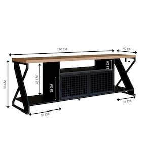 Rack Industrial 160cm Tv 60 Com Led P1033 Preto Mell Pp Milani Store Preto Mell