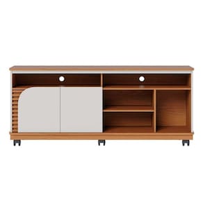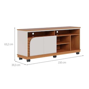 que tal o rack jurerê? o rack jurerê é perfeito para você que busca um móvel funcional para compor a sala de estar ou o home cinema. com design que se inspira nas tendências contemporâneas, este móvel une linhas retas e arredondadas, cor neutra e acabamento amadeirado, tudo para embelezar seu cantinho. já o amplo tampo é ideal para sua tv ou decorações, enquanto os nichos e as portas podem te ajudar na organização de pequenos itens. lindo de verdade, né? Marca: Modern
