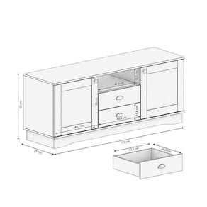 Corrediças: Metálicas | Garantia: 3 meses para defeito de fabricação | Gavetas: Externas | Matéria-prima: MDP BP | Puxadores: de Polipropileno | Quantidade de portas: 2 | Sistema de montagem: Parafuso Philips e Minifix | Peso suportado por cada gaveta: 4 Kg