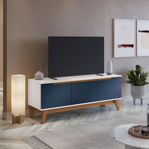 Transforme sua sala de estar com a beleza e a qualidade do Rack 3 portas R263 da Kappesberg. Com um design clássico, ele se encaixa perfeitamente em todos os espaço. São 52,5cm de altura, 1,36m de largura e 42cm de profundidade, produzido com estrutura em MDP de 15mm e portas MDF de 18mm, o que garante mais robustez, firmeza e qualidade ao seu produto, além de um acabamento lindo. E com sete camadas de pintura, tanto na parte interna quanto na externa, a caixaria conta com acabamento em brilho na cor branca, enquanto as portas, com pintura na cor azul profundo, possuem acabamento fosco. Uma combinação marcante e moderna, perfeita para quem busca por design e estilo em cada detalhe, fazendo a diferença no seu ambiente. Com três portas e amplo espaço, você poderá guardar seus itens com praticidade, deixando sua sala de estar sempre organizada. A base e os pés completam o design e a qualidade do produto, garantindo seu acabamento clássico e rústico. Nas portas, o destaque fica para o sistema de amortecimento, garantindo um fechamento suave e sem ruídos, além de mais durabilidade, e o puxador cava embutido proporciona o toque de beleza que faltava, deixando sua sala de estar perfeita.